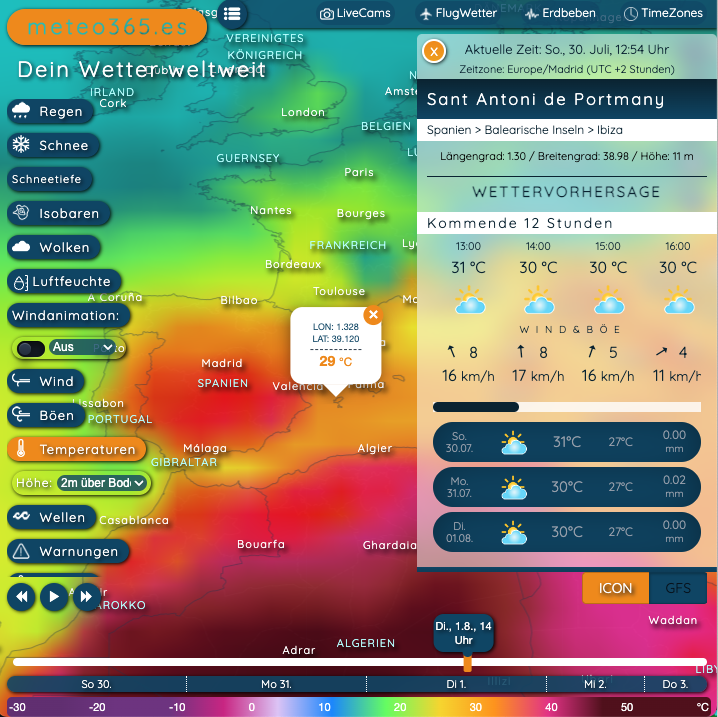 Das aktuelle Flughafenwetter für Eivissa / Ibiza gibt es