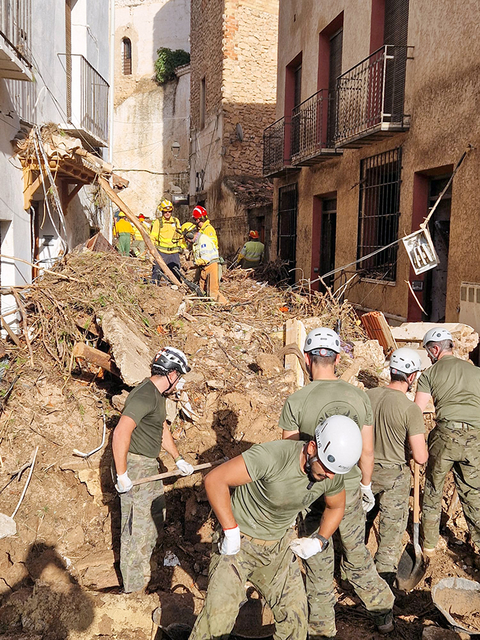 Die Zivilbevölkerung versucht sich selbst zu organisieren, Tausende aus ganz Spanien reisen an und bringen Lebensmittel und Kleidung.