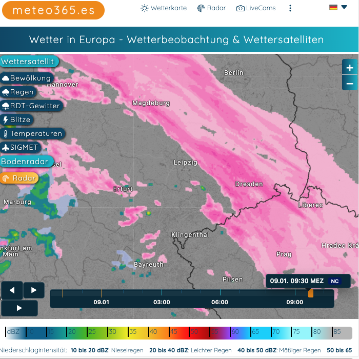 Wie die Grafik und das Foto (Dresden) zeigt, passen Radar und Realität perfekt zusammen.