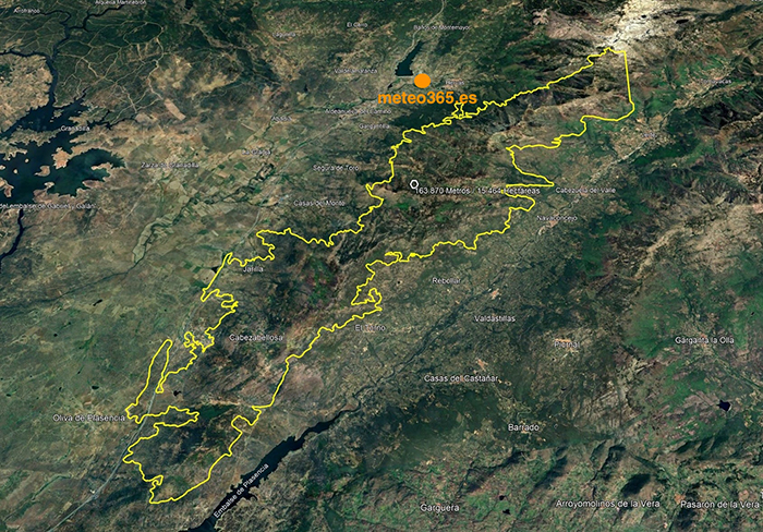 meteo365.es estaba en el megaincendio forestal en Extremadura, conocido por las siglas #IFJarilla. Ya se han quemado más de 15.000 hectáreas (ver gráfico), y el fuego sigue fuera de control. Debido a los numerosos cierres y a la falta de cobertura mediática, encontramos un punto en el embalse de Baños (Hervás), y el lunes por la mañana, el primer helicóptero llegó a las 10:45 para cargar agua. Solo había cinco aproximaciones para abordar la ladera en llamas cerca de Hervás. Después, el helicóptero fue llamado al otro lado de la montaña, al Valle del Jerte.