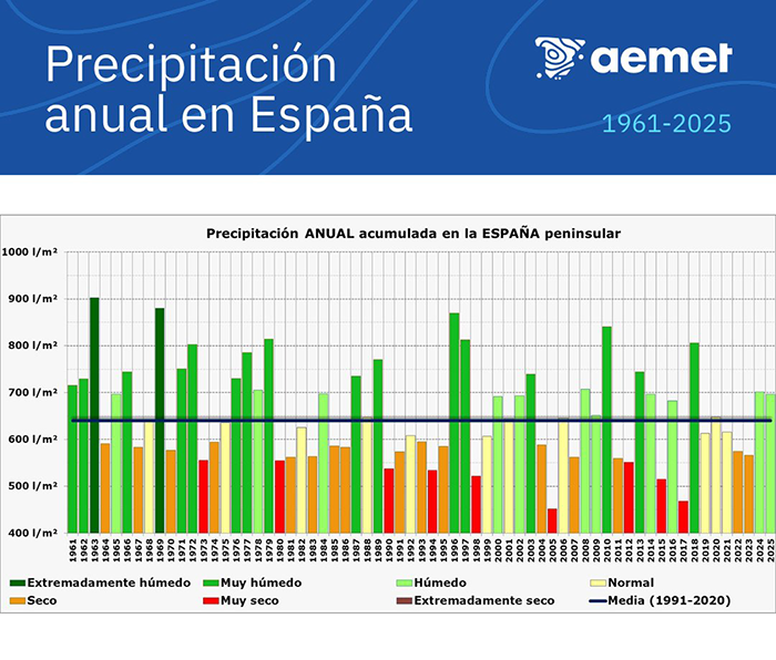 El gráfico actual de AEMET muestra que en España siempre ha habido fases con menos precipitaciones, pero también fases con muchas precipitaciones.