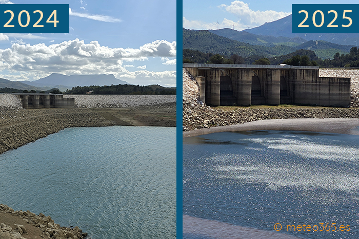The reservoirs were empty. In October 2024, the La Viñuela reservoir had a volume of only 13.6%, the Limonero reservoir 15.3%, and the three reservoirs (near Caminito del Rey) del Guadalteba 11.72%, Gudalhorce 8.02%, and Conde del Guadalhorce 20.69%.